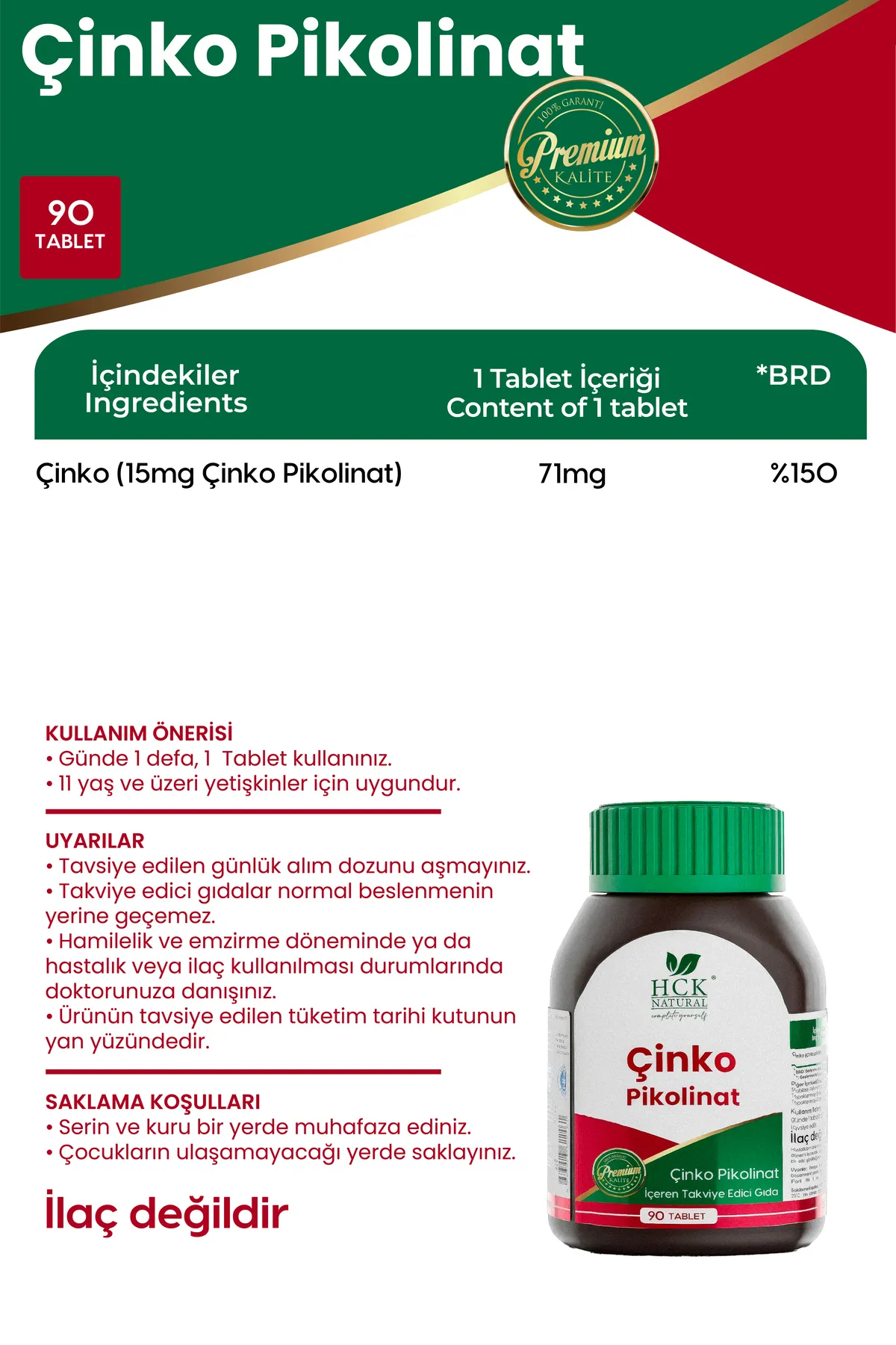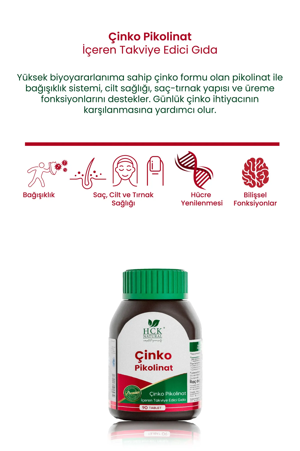 HCK Natural Çinko Pikolinat, sağlıklı yaşamı desteklemek ve çinko eksikliğini gidermek isteyenler için idealdir.