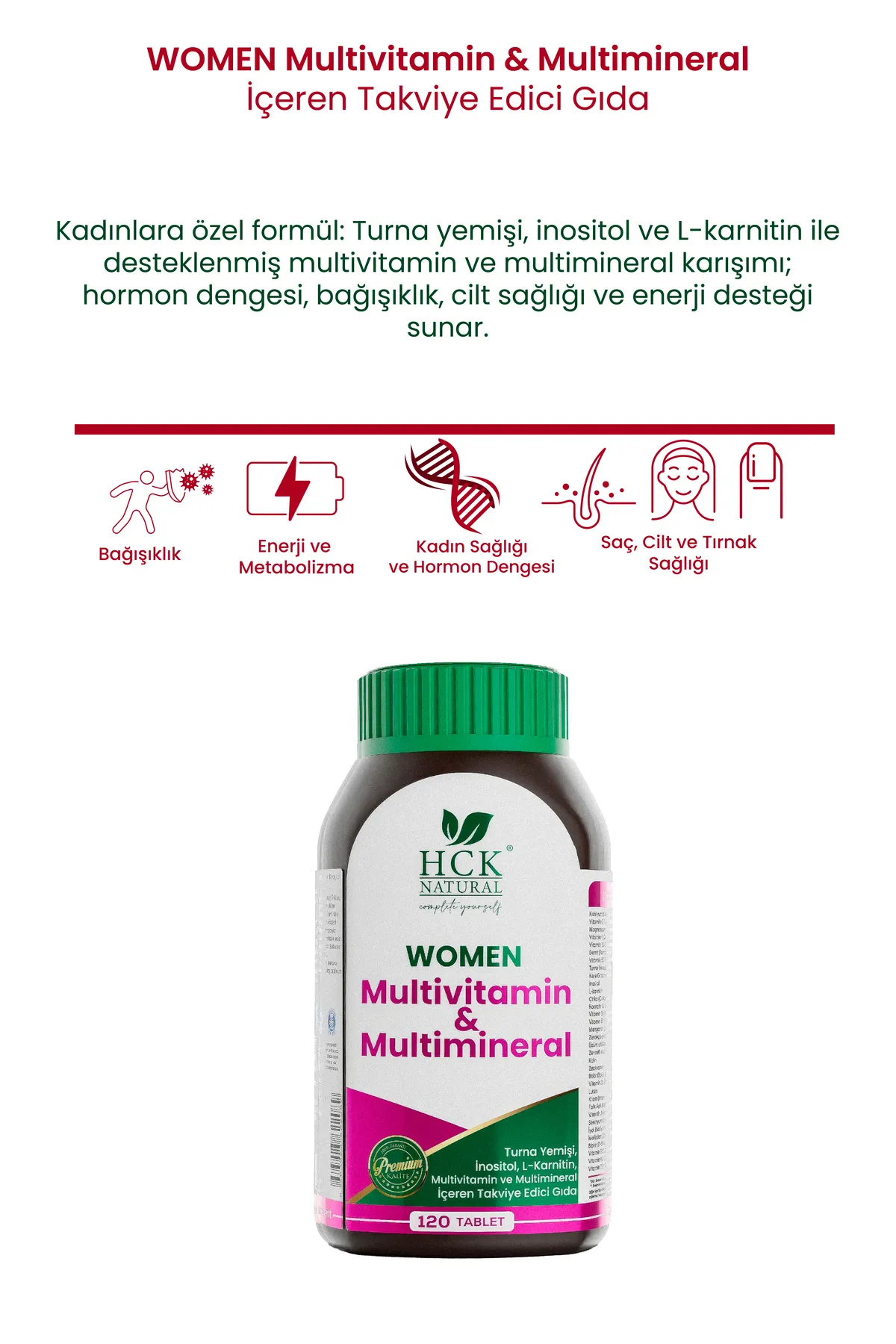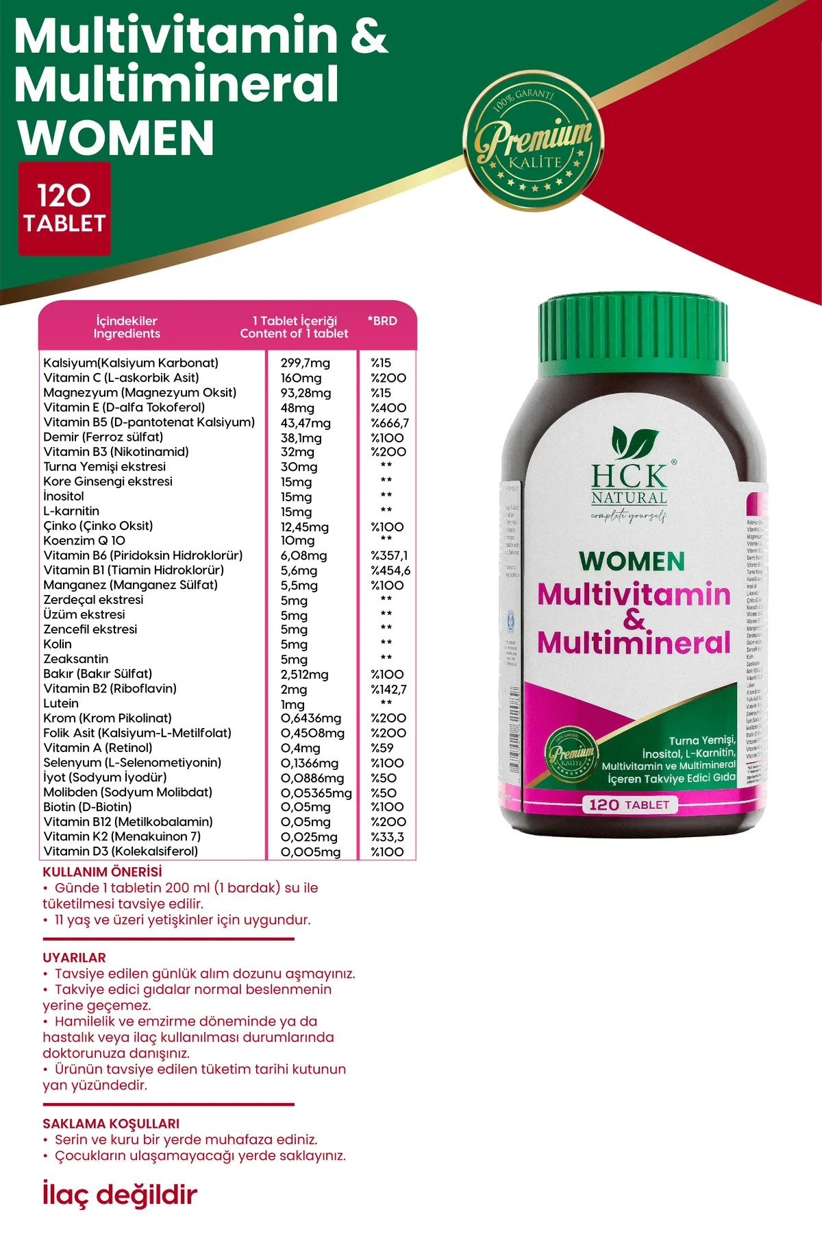 HCK NATURAL WOMEN- Kadınlara Özel Multivitamin-multimineral Kompleks 120 Tablet L Karnitin Turna Yemişi
