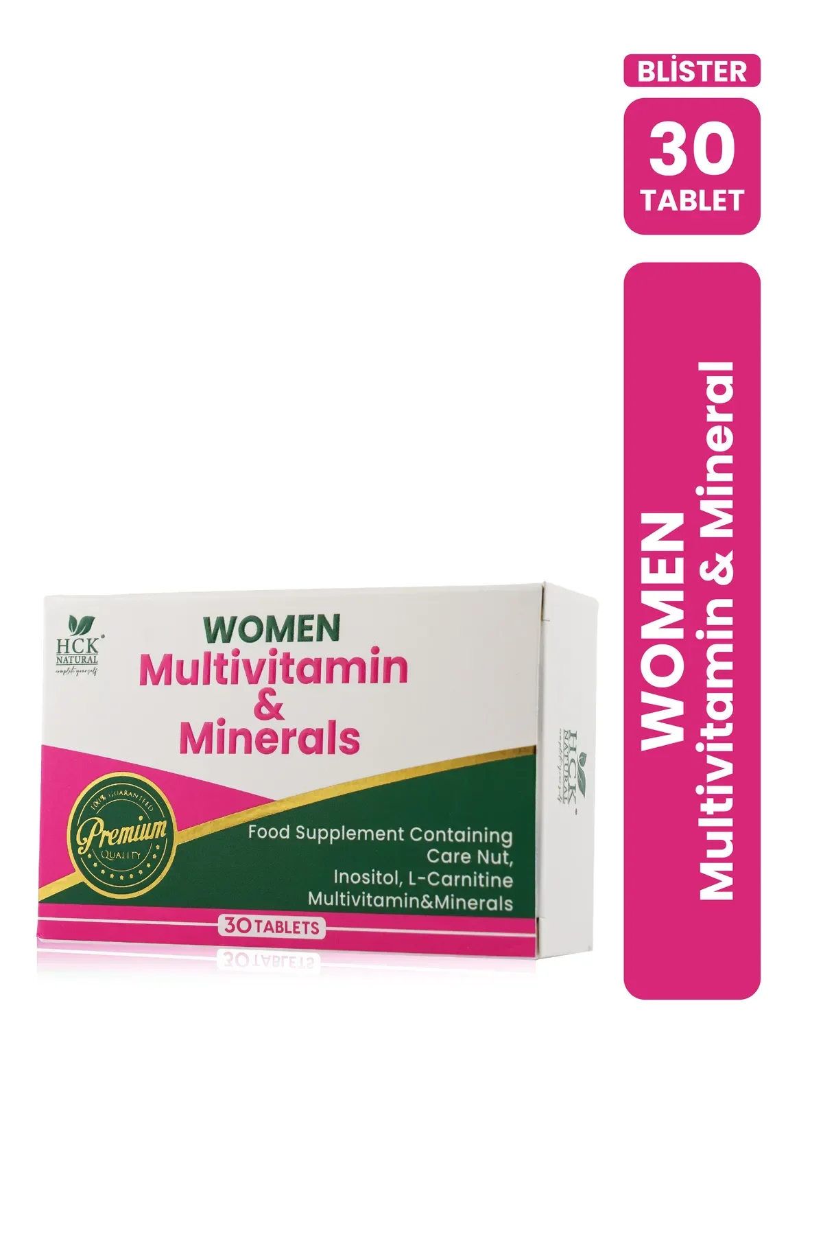 HCK Natural Women Multivitamin & Multimineral, kadınların günlük vitamin ve mineral ihtiyaçlarını karşılamak için özel olarak formüle edilmiştir. İçeriğindeki vitaminler ve mineraller, enerji seviyelerini artırmaya, bağışıklık sistemini güçlendirmeye ve cilt, saç ve tırnak sağlığını desteklemeye yardımcı olur. Kore Ginsengi ve Turna Yemişi gibi bitkisel ekstraktlar ise zindelik ve genel iyilik hali sağlar.