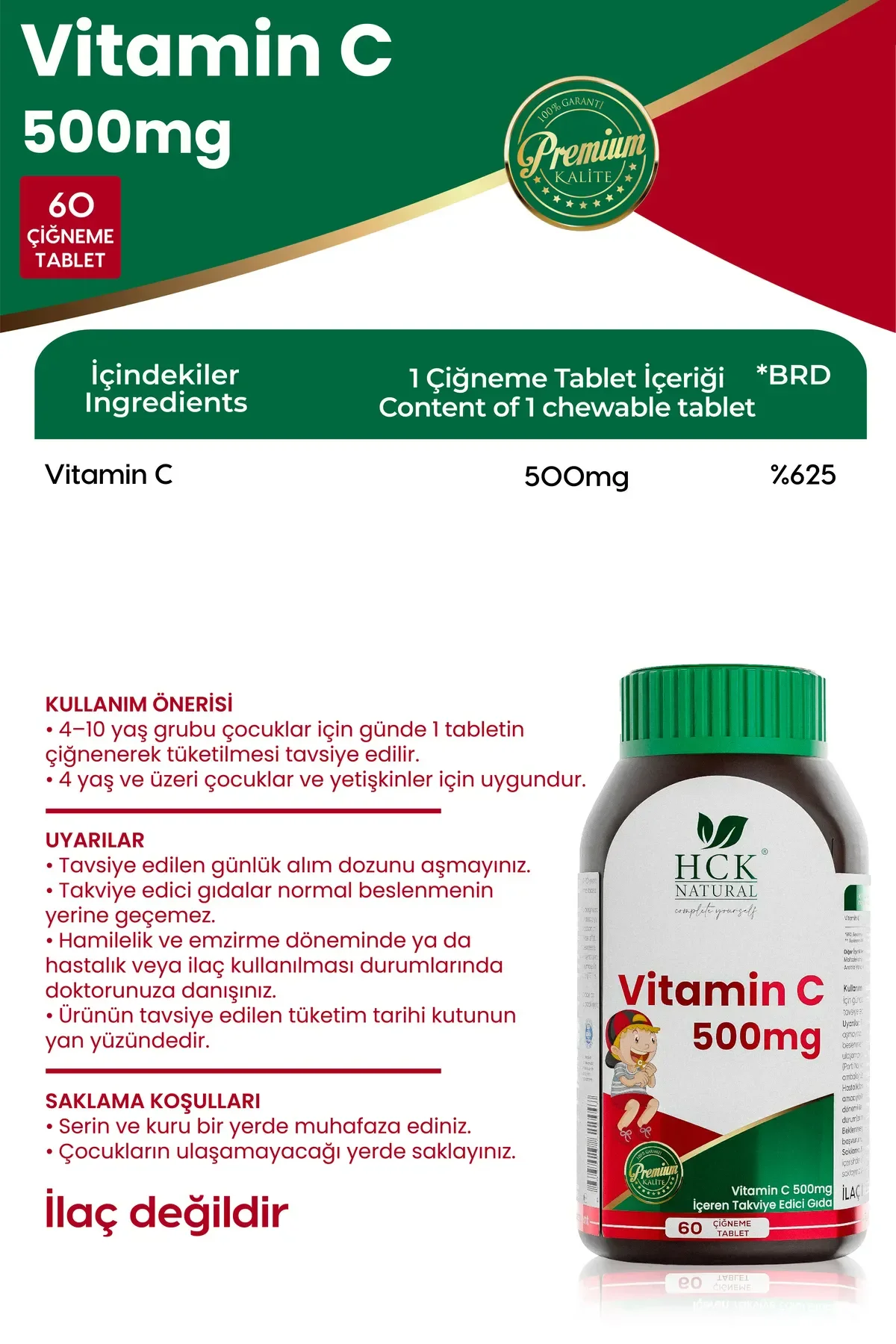 - 4–10 yaş grubu çocuklar için günde 1 tabletin çiğnenerek tüketilmesi tavsiye edilir.