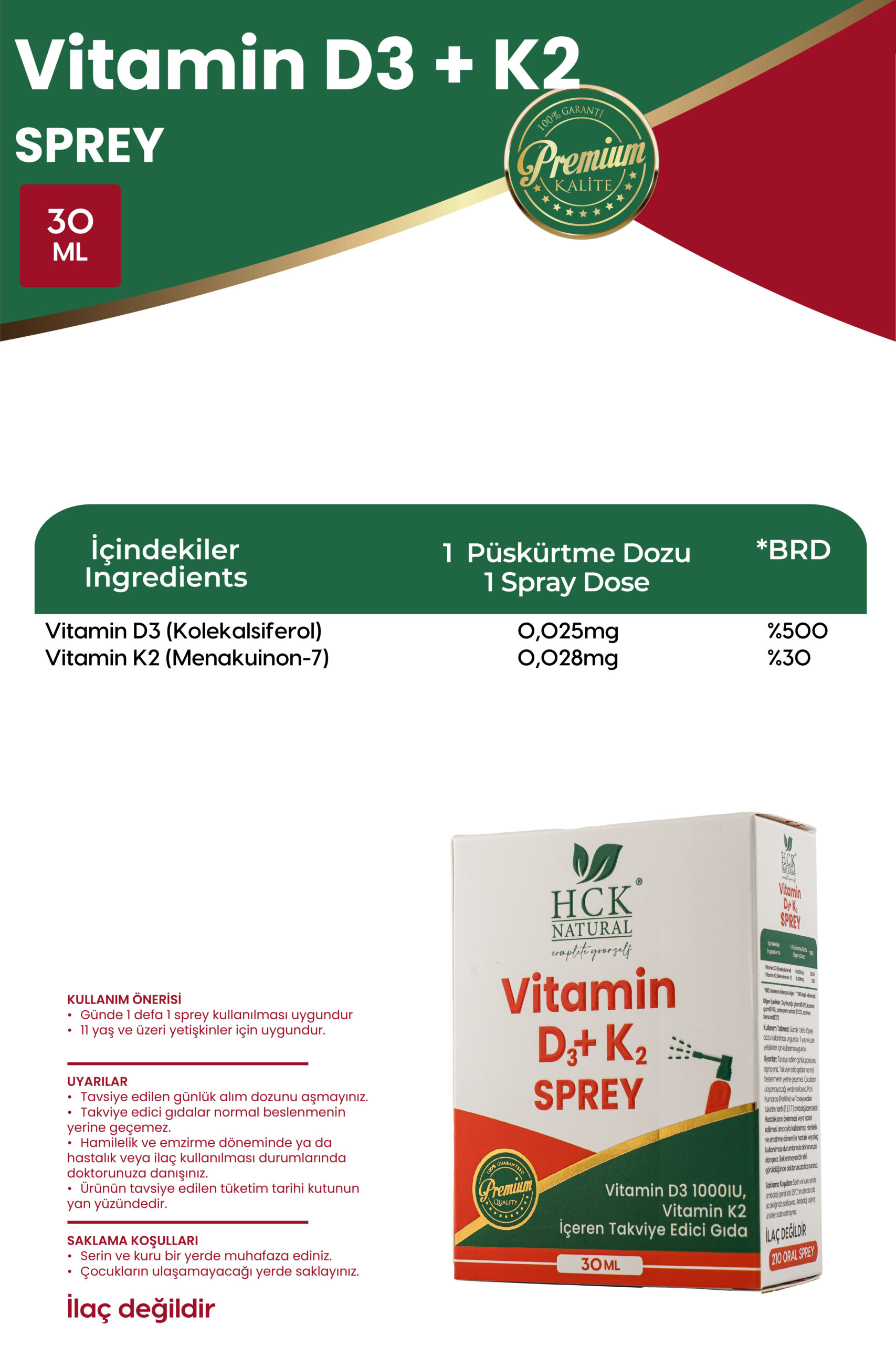 Vitamin D3 Ve K2 Sprey 30ML