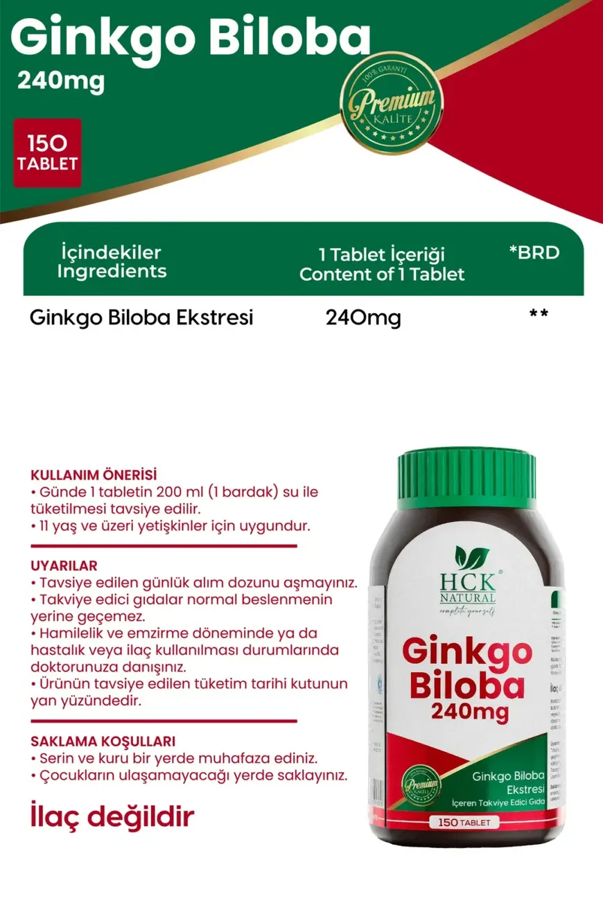 HCK NATURAL Ginkgo Biloba 240mg 150 TABLET