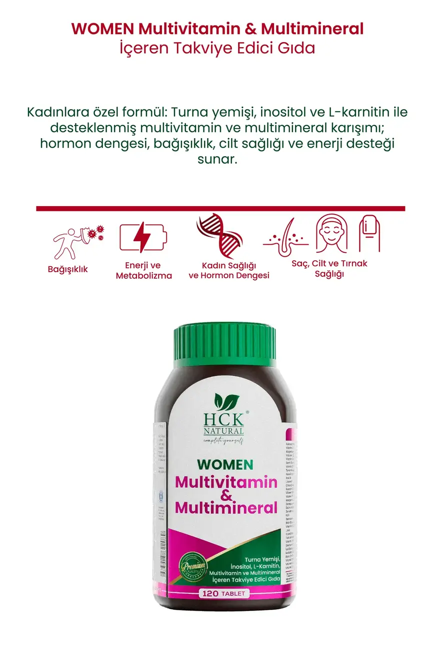 HCK NATURAL WOMEN- Kadınlara Özel Multivitamin-Multimineral Kompleks 120 Tablet